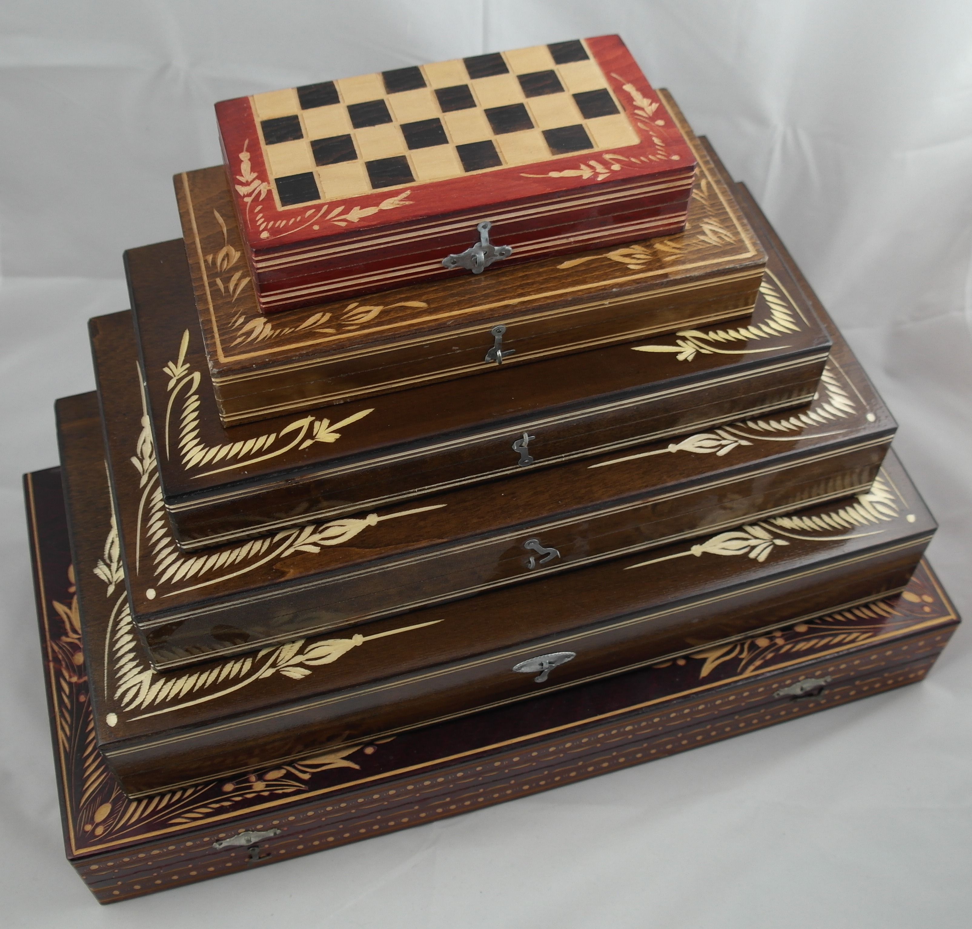 Schachbrett weiß/braun mit Muster, Größe 4, für Schach und Backgammon